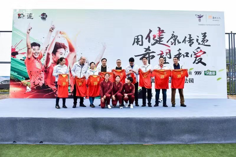 3月9日,“華潤三九助力中國國家女子足球隊圓夢法國”簽約儀式順利進行。三位女足隊員婁佳惠、陳巧珠、謝綺文也來到簽約現(xiàn)場與嘉賓互動并參與了互動游戲,為有幸參與游戲的嘉賓送上了印有39號的簽名球衣。