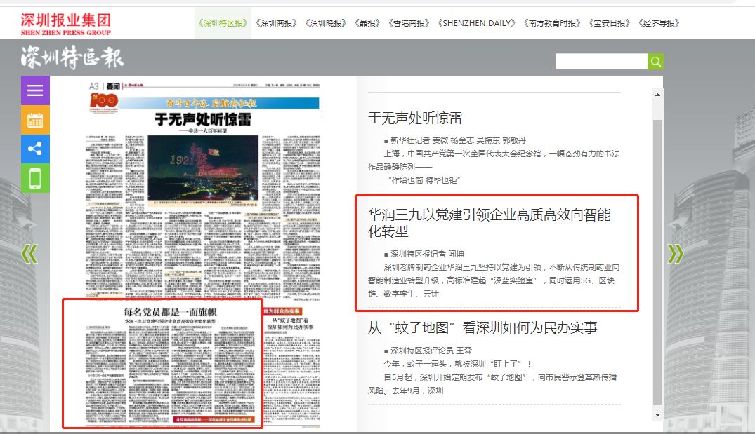 編者按:近期,深圳特區(qū)報記者對邱華偉書記進行了專題采訪。6月16日,《深圳特區(qū)報》刊發(fā)了標題為“每名黨員都是一面旗幟,華潤三九以黨建引領(lǐng)企業(yè)高質(zhì)高效向智能化轉(zhuǎn)型”的專題訪談文章,重點報道了公司黨建與業(yè)務深度融合的做法和亮點。