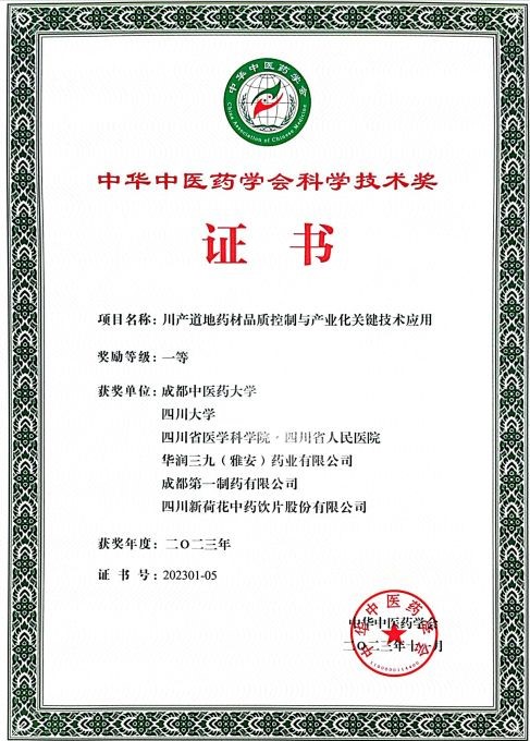 2023年度中華中醫(yī)藥學會科學技術(shù)獎評審結(jié)果于近日發(fā)布,華潤三九“川產(chǎn)道地藥材品質(zhì)控制與產(chǎn)業(yè)化關(guān)鍵技術(shù)應用”科研項目榮獲科學技術(shù)獎一等獎。