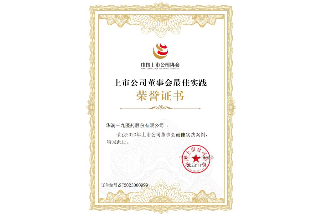 華潤三九及旗下昆藥集團(tuán)獲2023上市公司董事會(huì)兩項(xiàng)榮譽(yù)