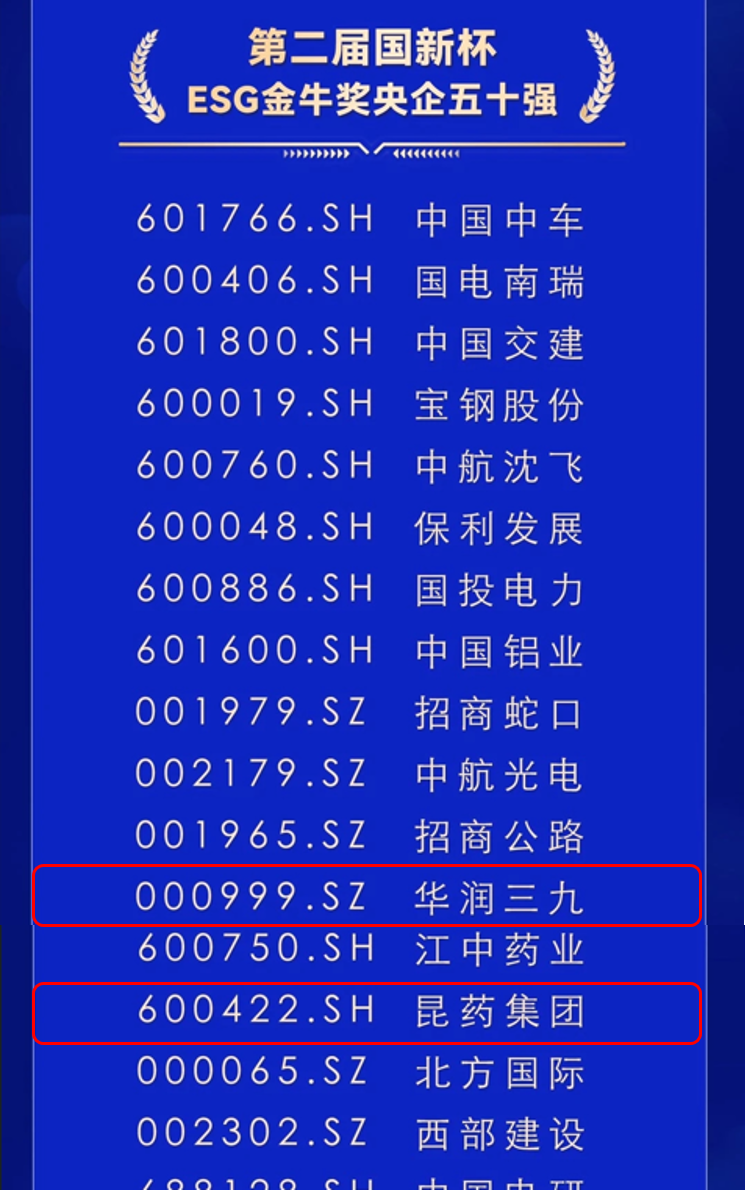 華潤三九及旗下昆藥集團(tuán)同獲第二屆國新杯·ESG金牛獎(jiǎng)兩個(gè)獎(jiǎng)項(xiàng)