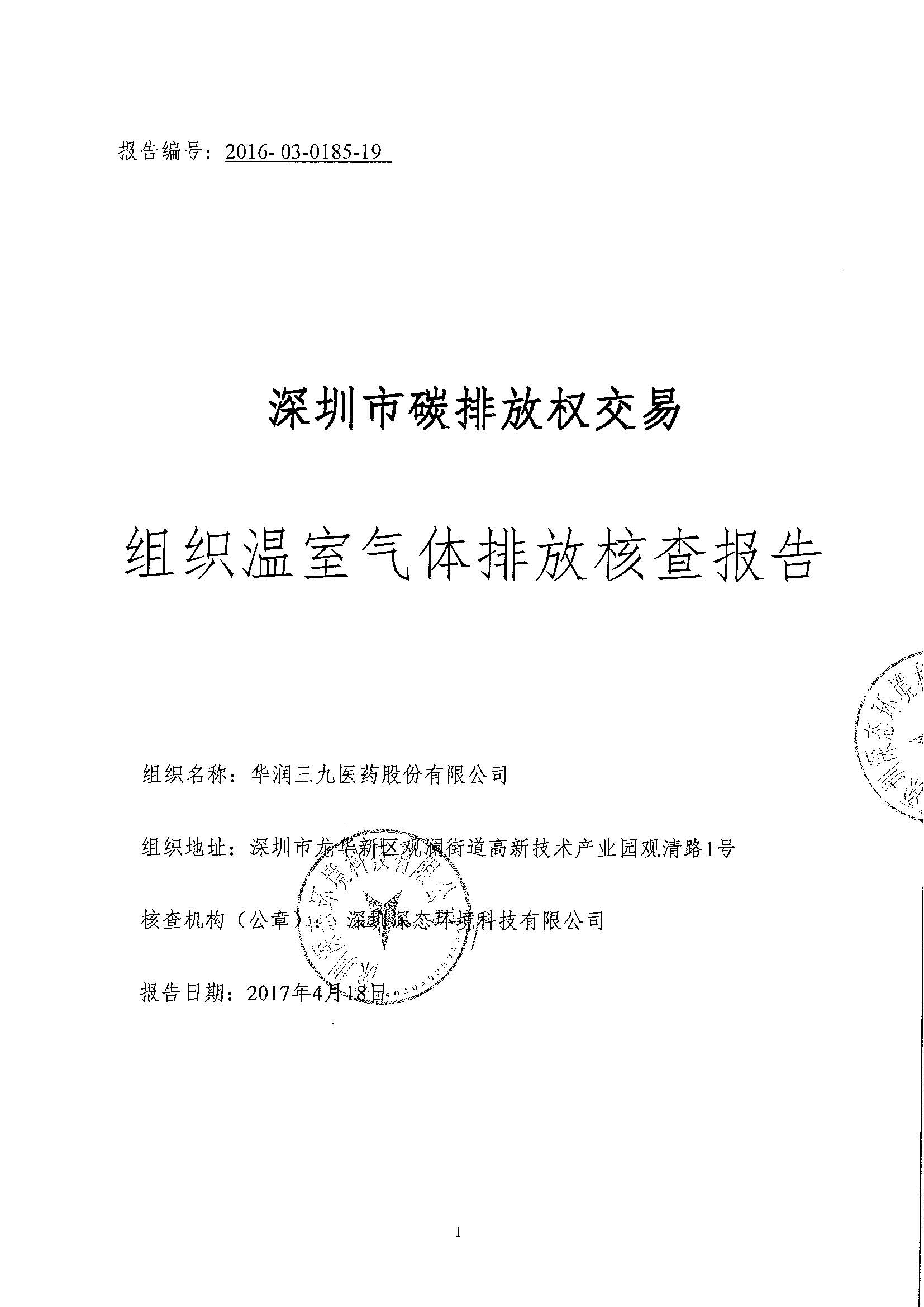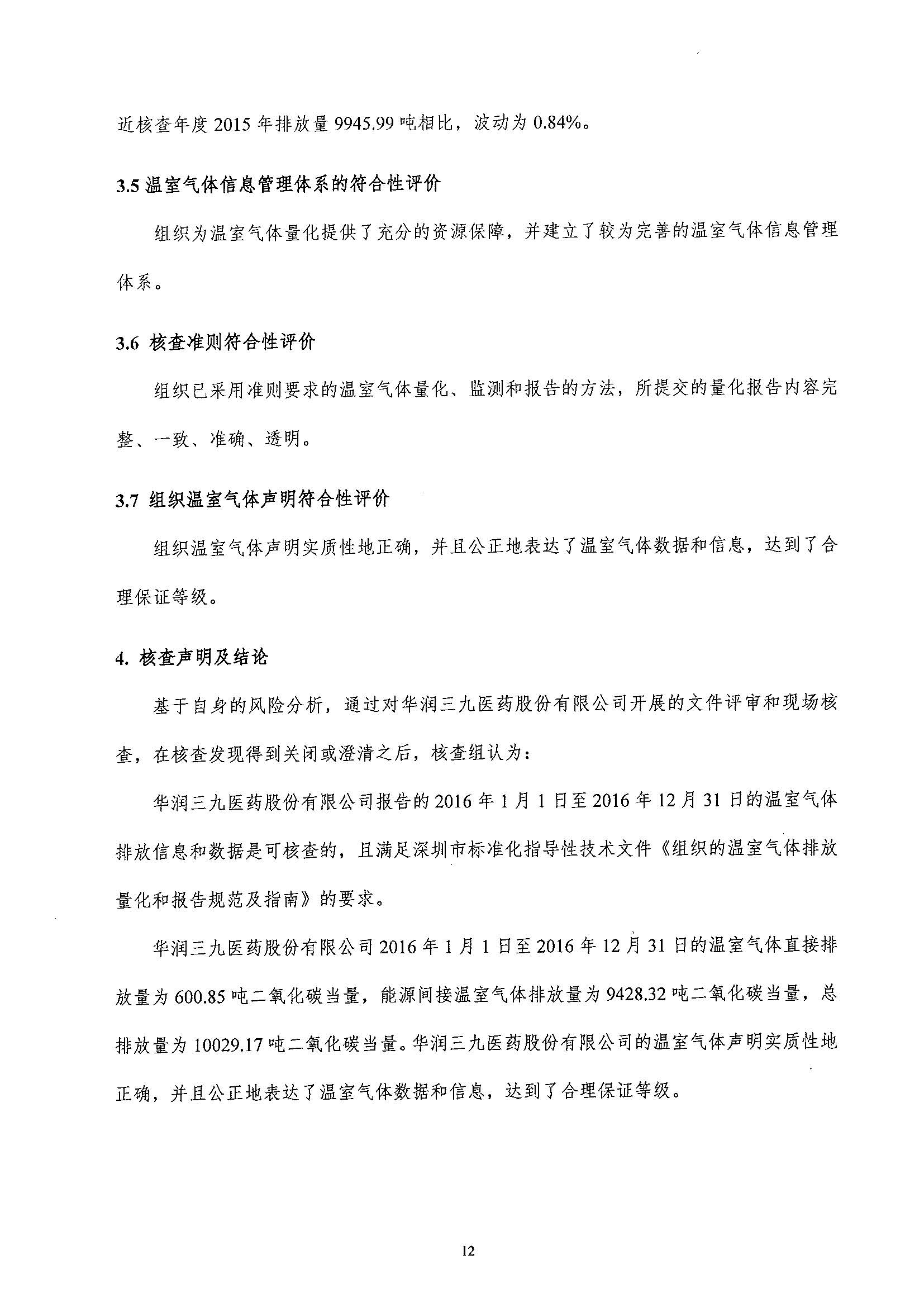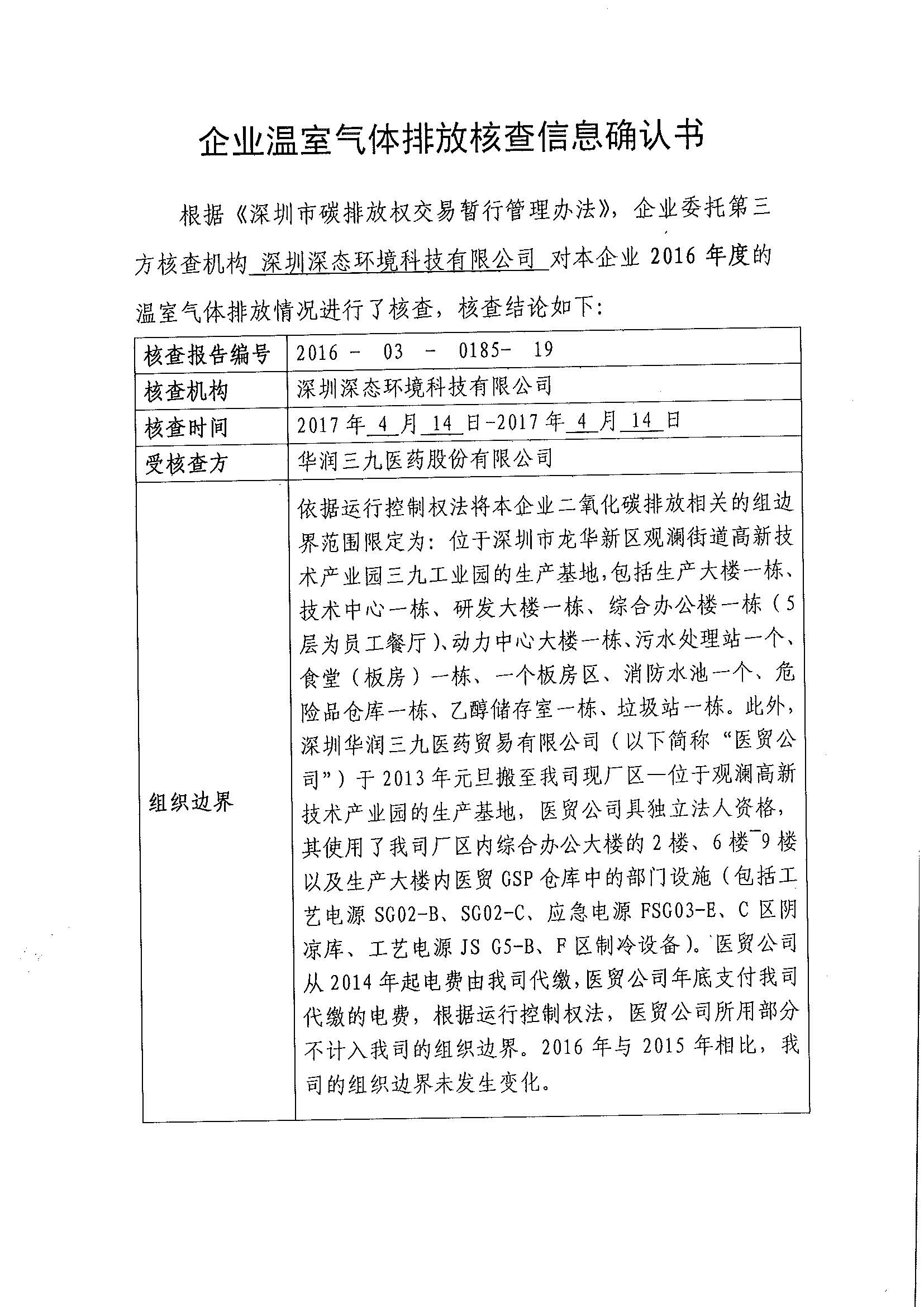 2016年度華潤三九溫室氣體排放核查報告