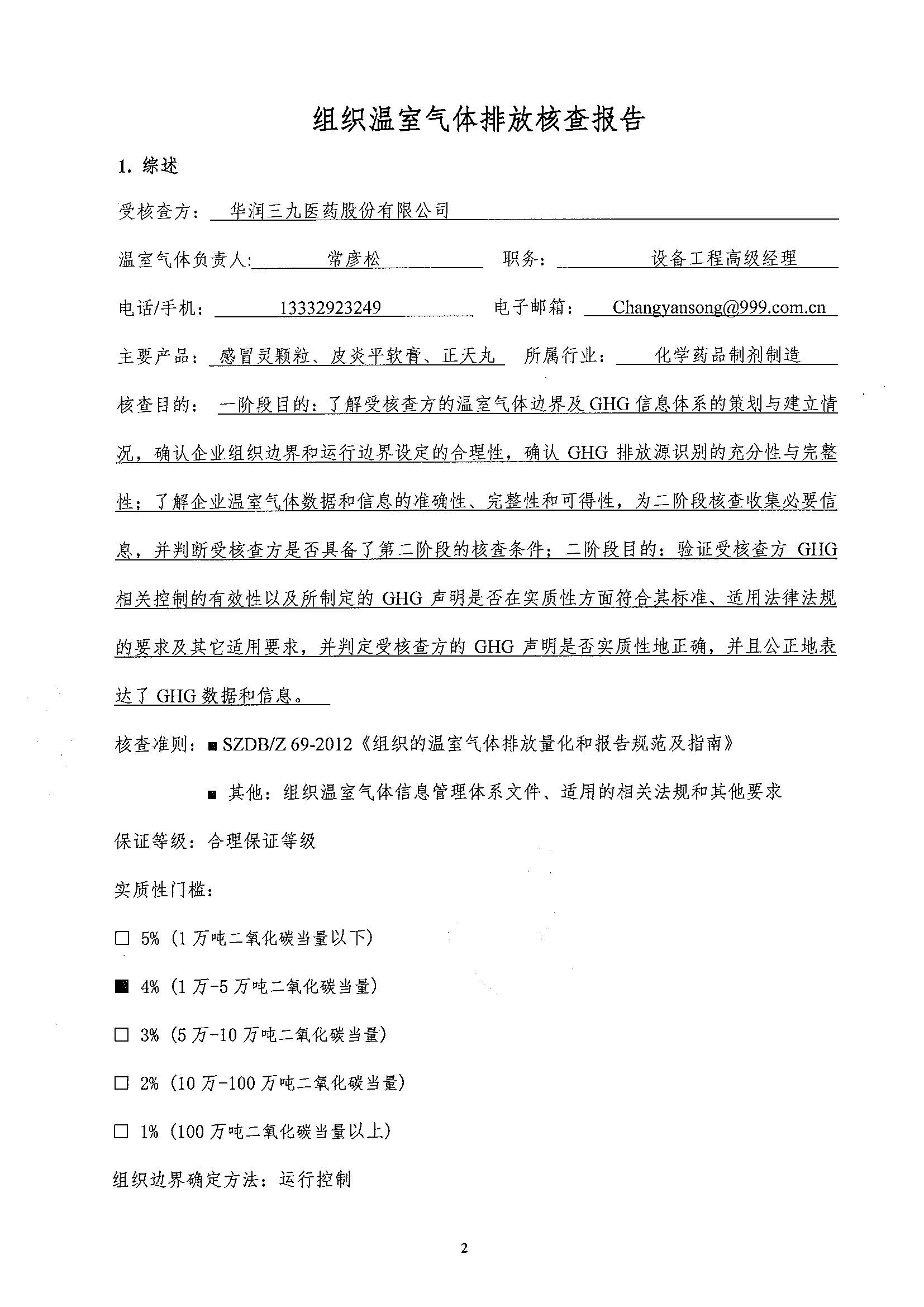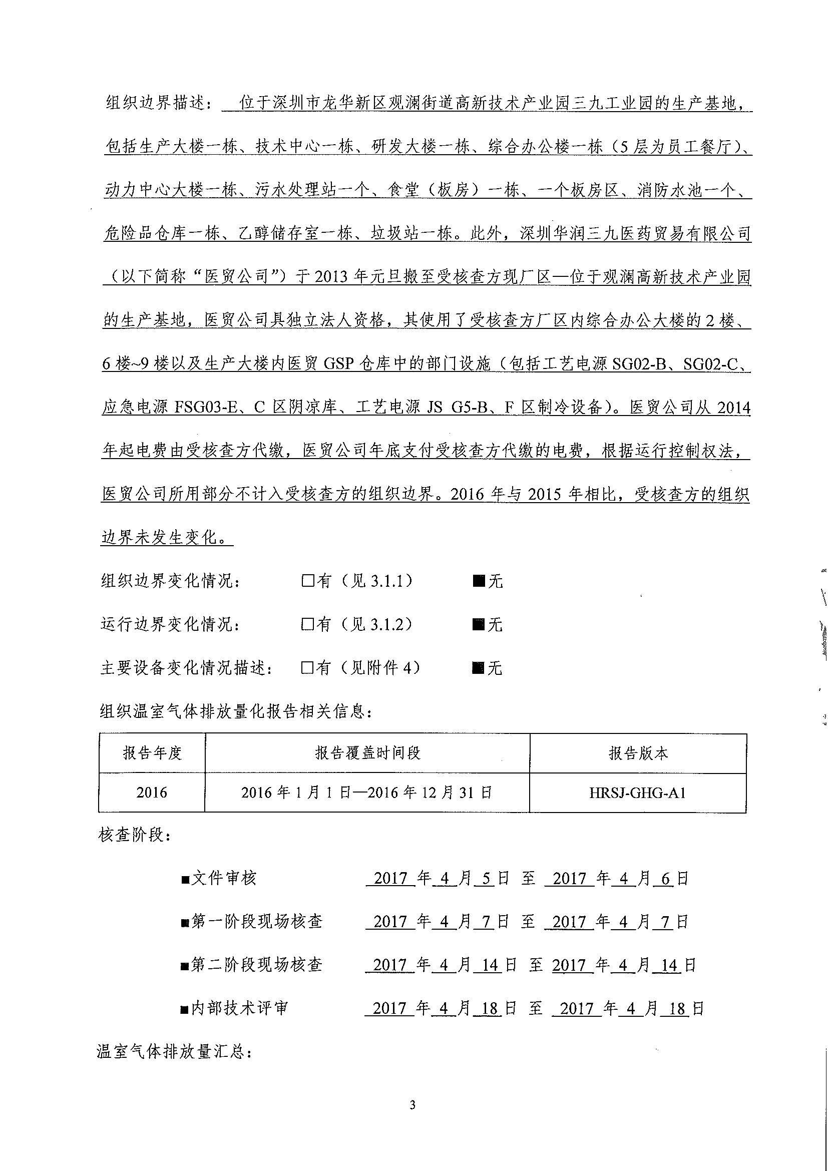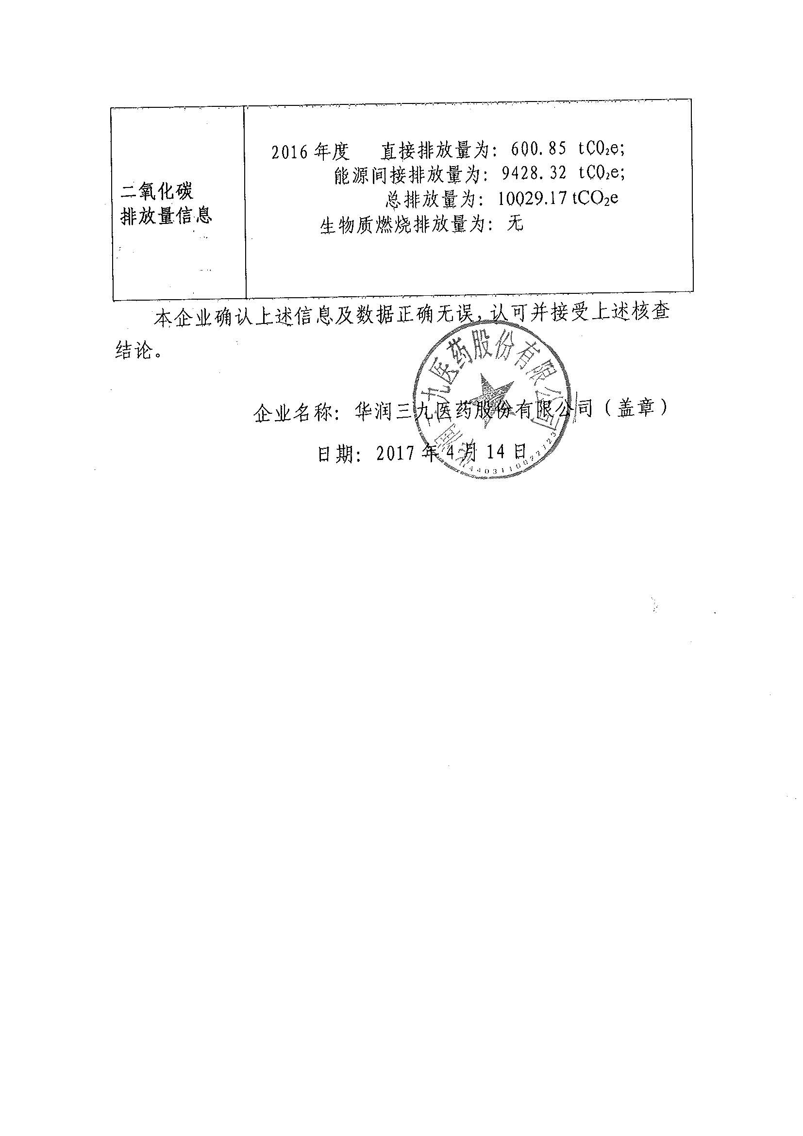 2016年度華潤三九溫室氣體排放核查報告