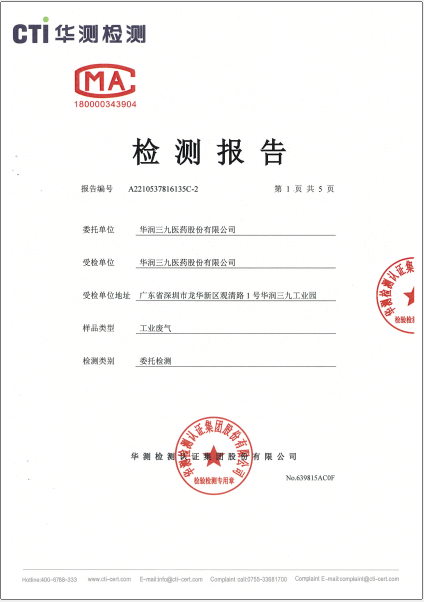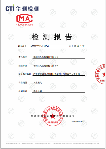 華潤(rùn)三九廢氣檢測(cè)報(bào)告(2022年三季度)