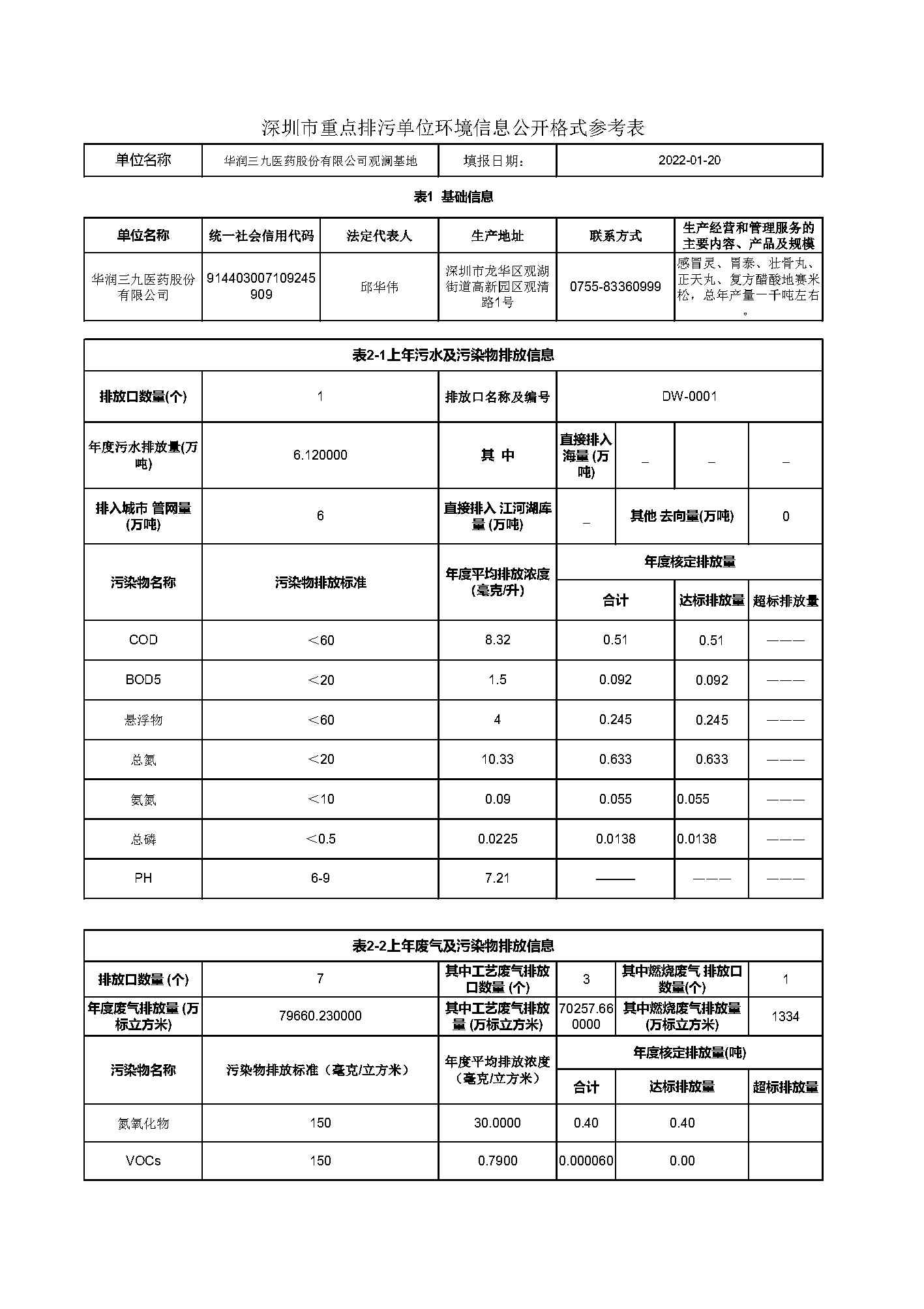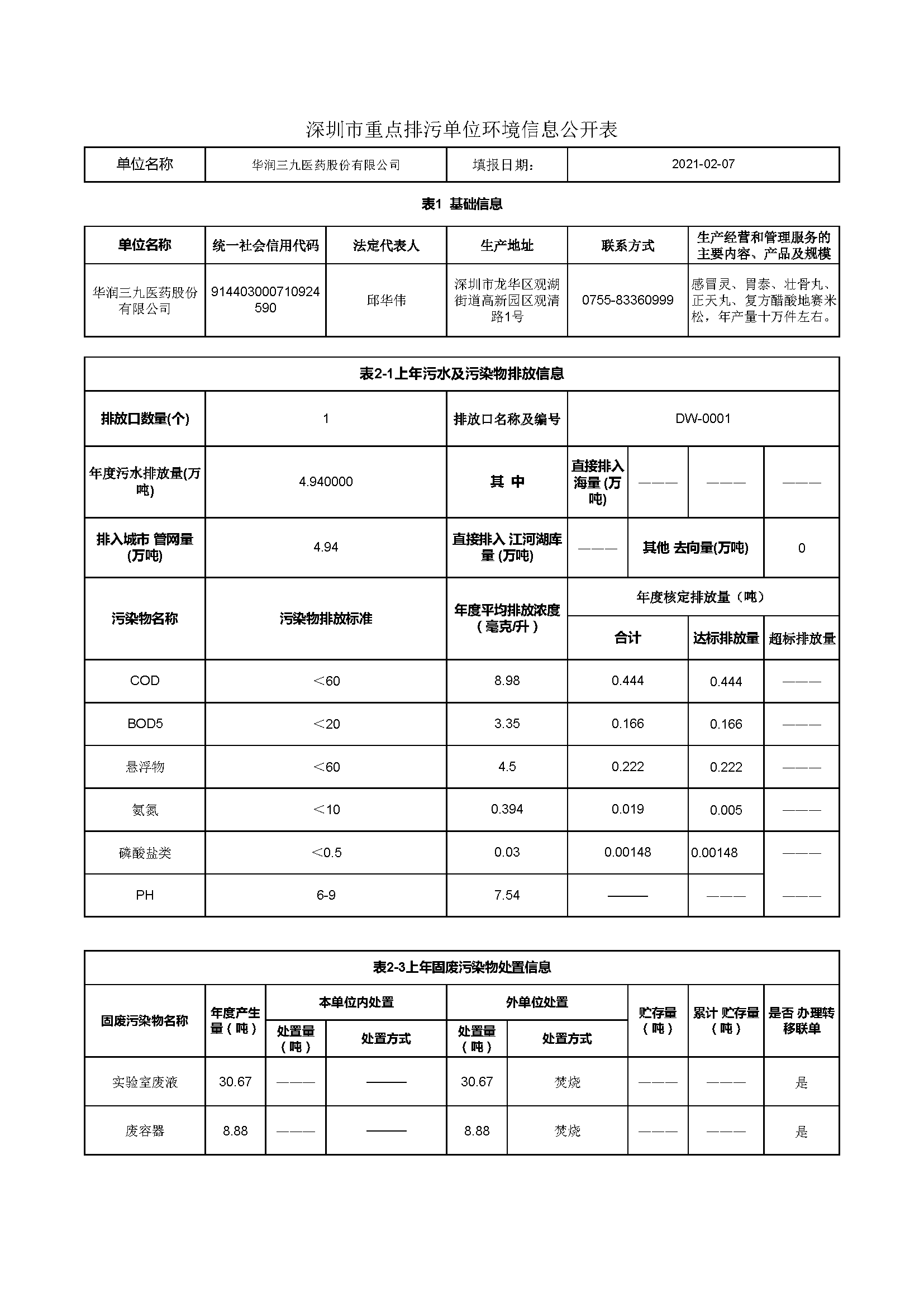 華潤三九2021年環(huán)保信息公開