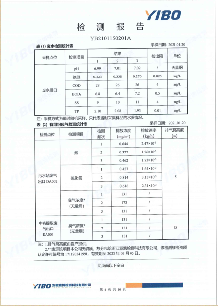 華潤金蟾污染物排放檢測報告(2021年一季度)