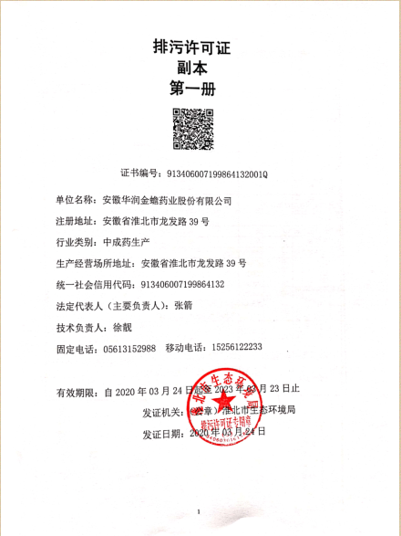 華潤金蟾排污許可證