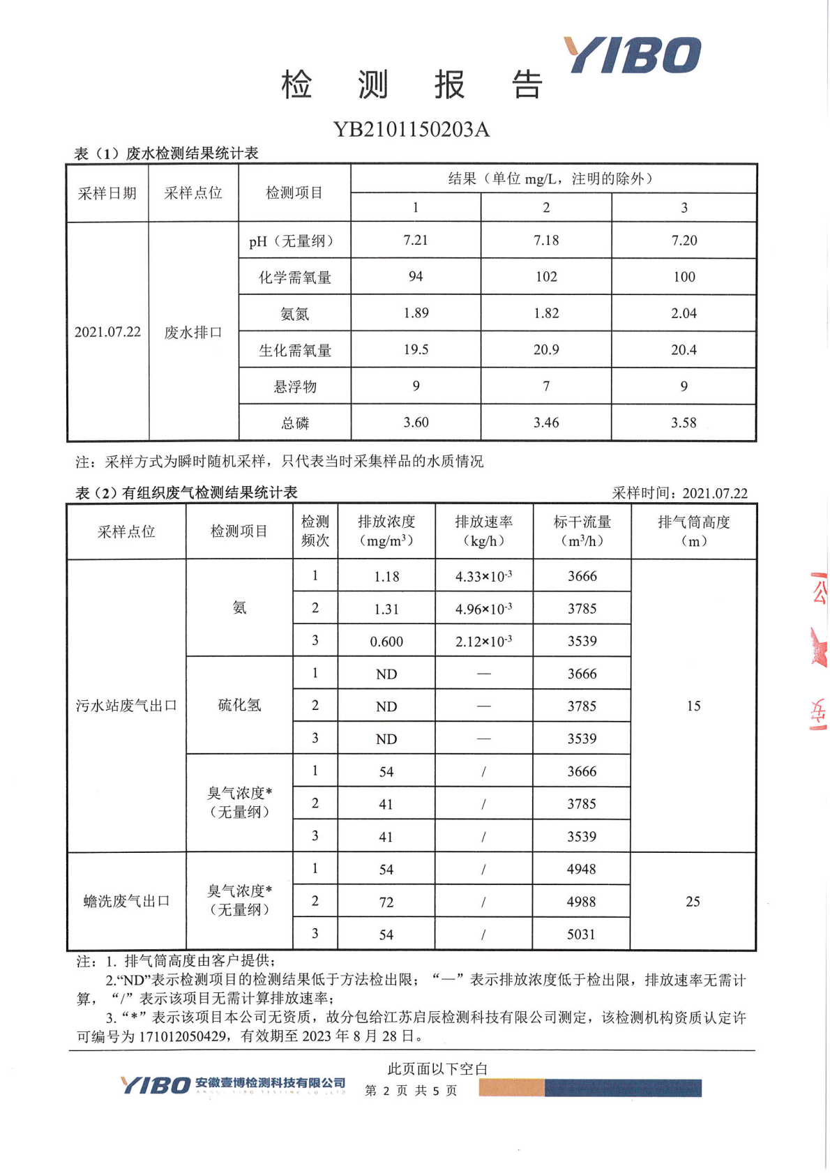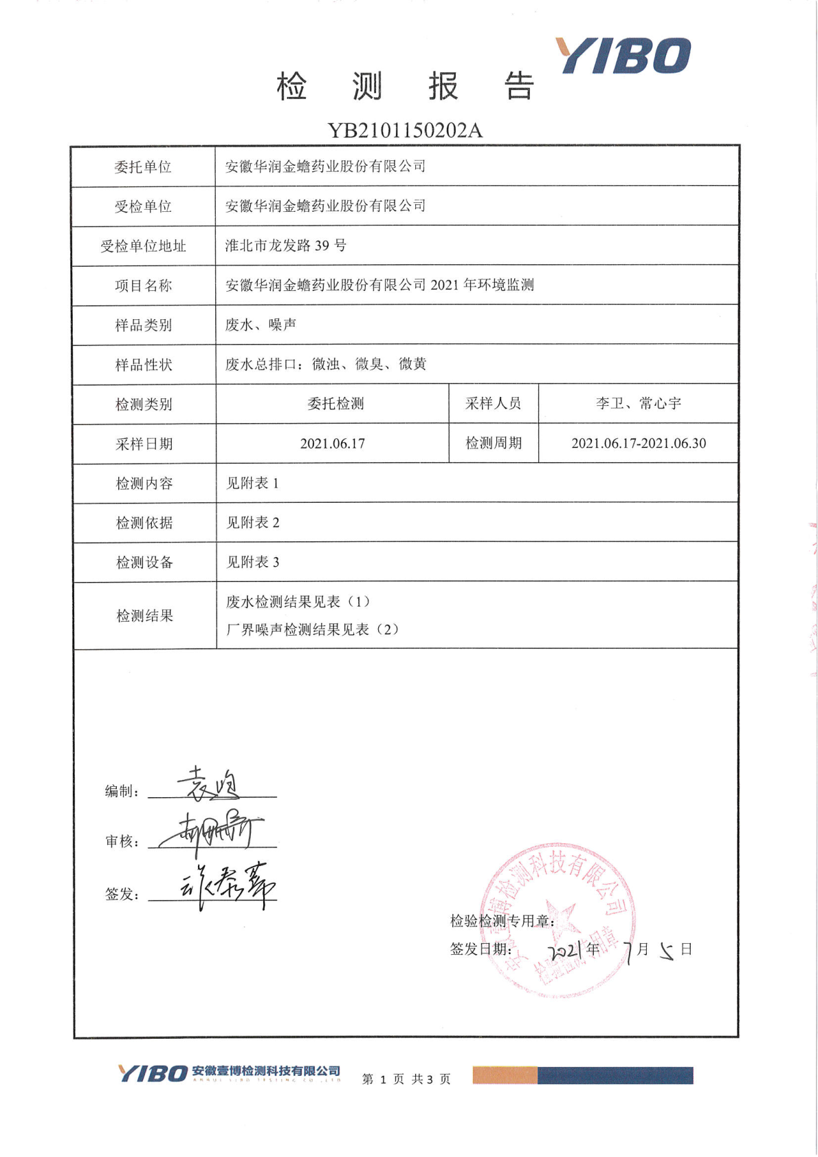 華潤金蟾污染物排放檢測報告(2021年二季度)