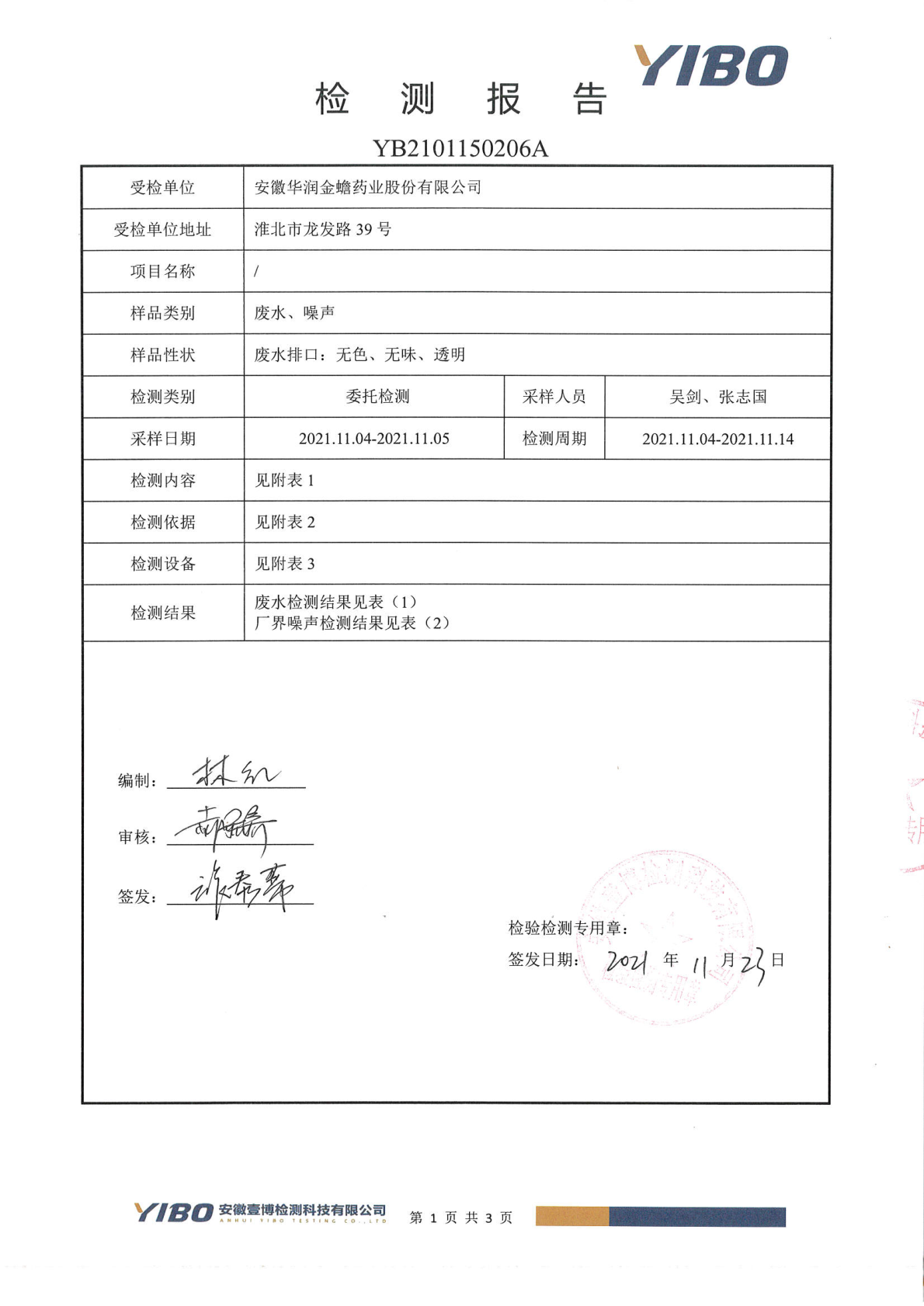 華潤金蟾污染物排放檢測報告(2021年三季度)