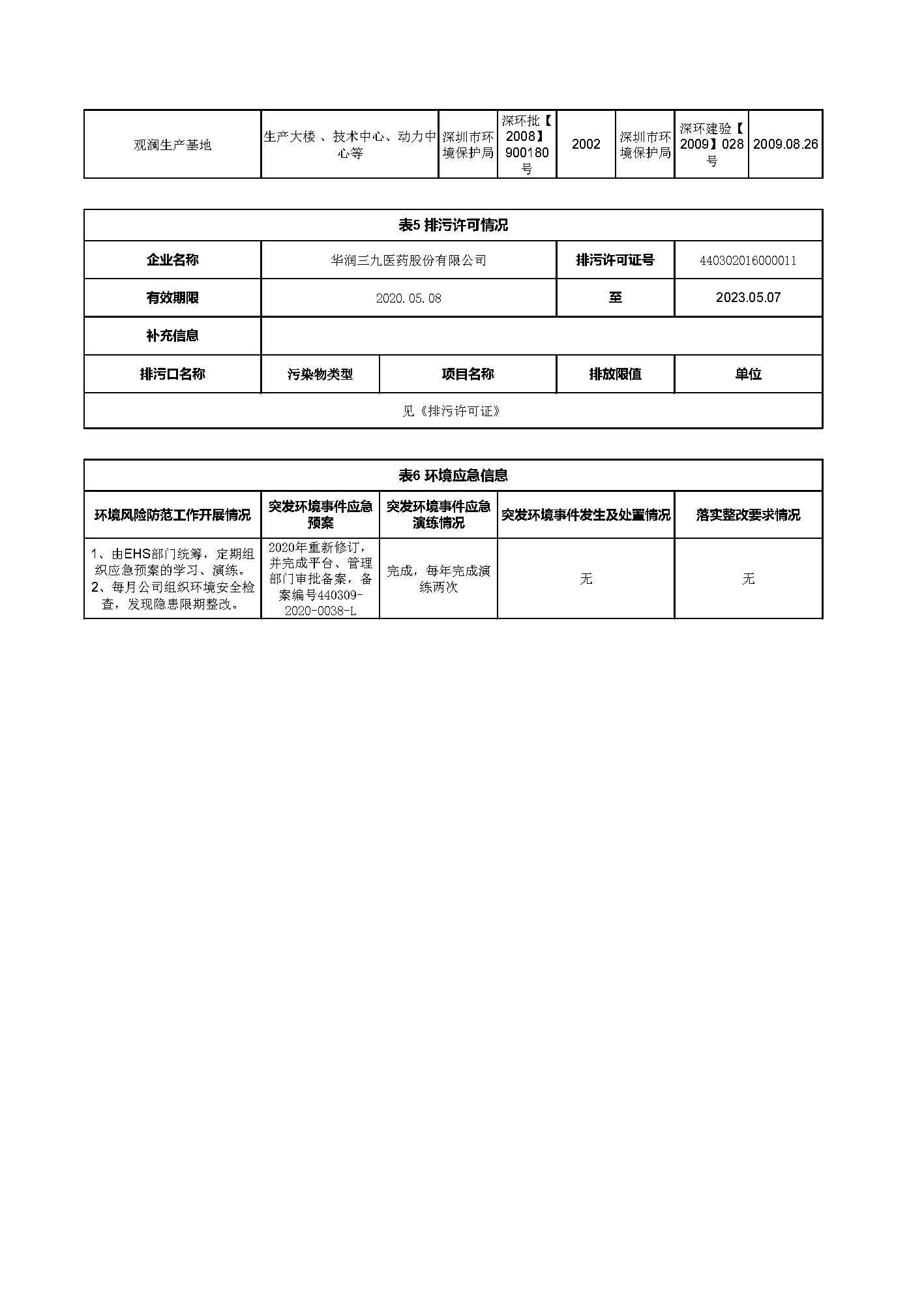 華潤三九2020年環(huán)保信息公開