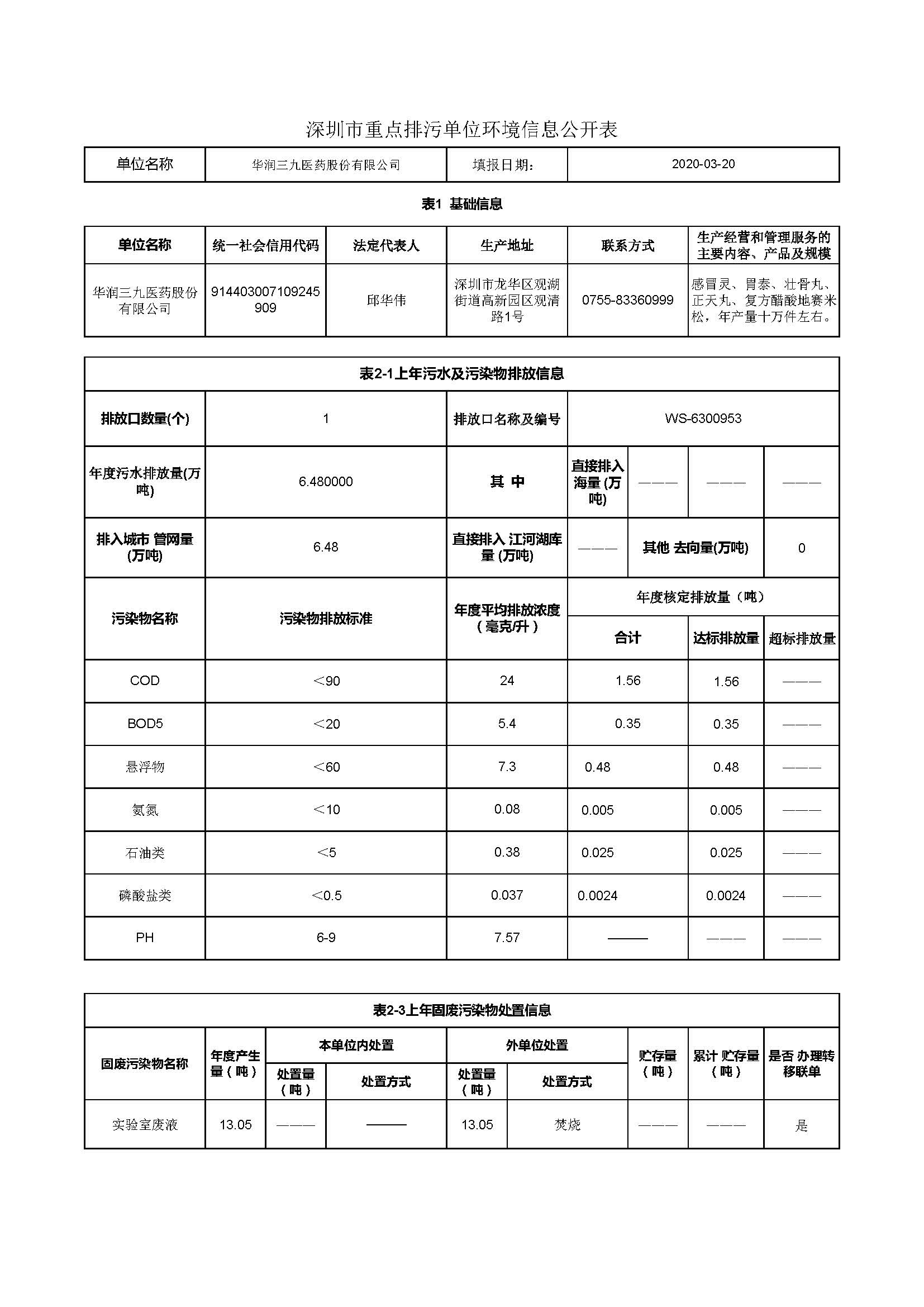 華潤三九醫(yī)藥觀瀾基地2019年環(huán)保信息公開