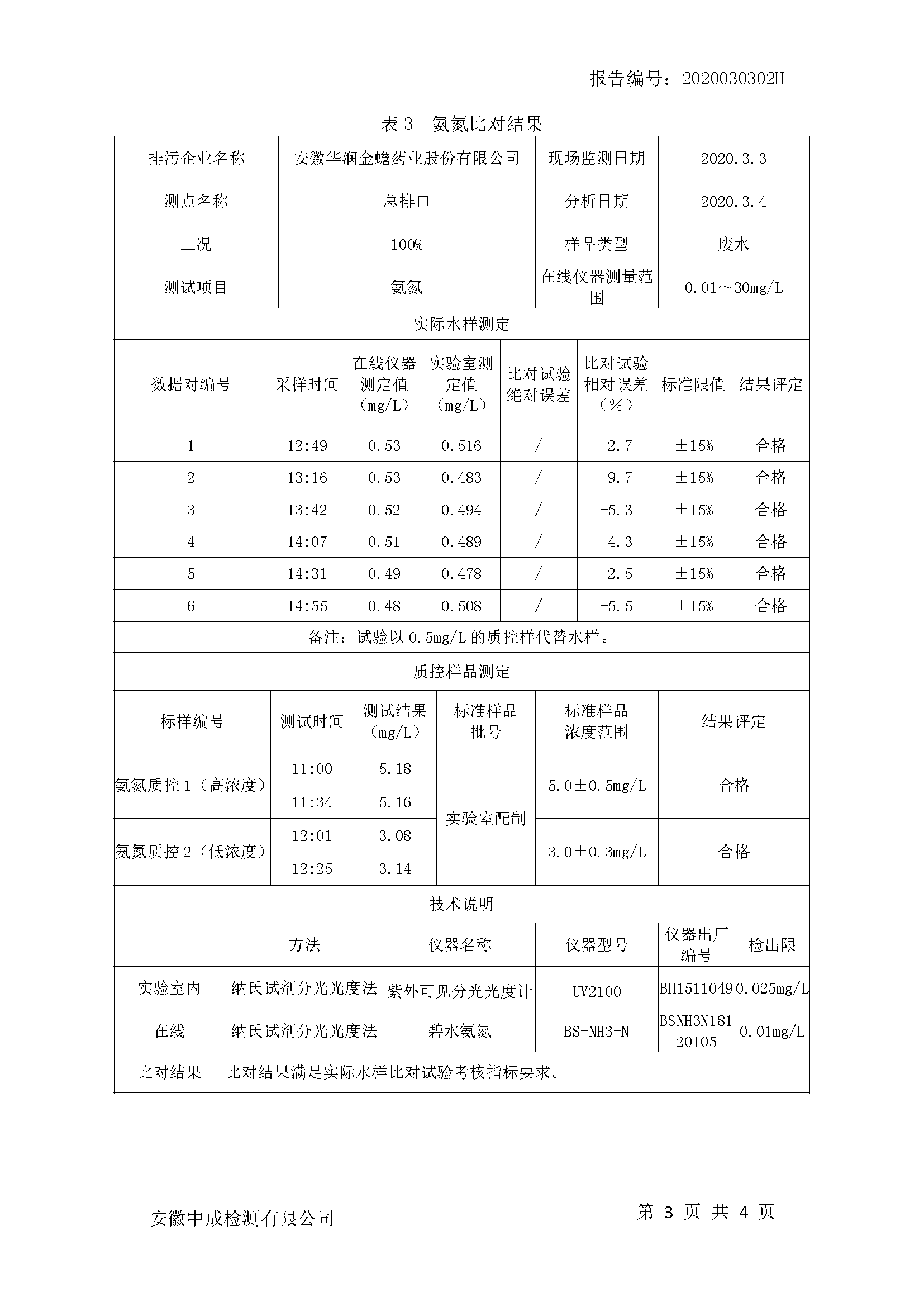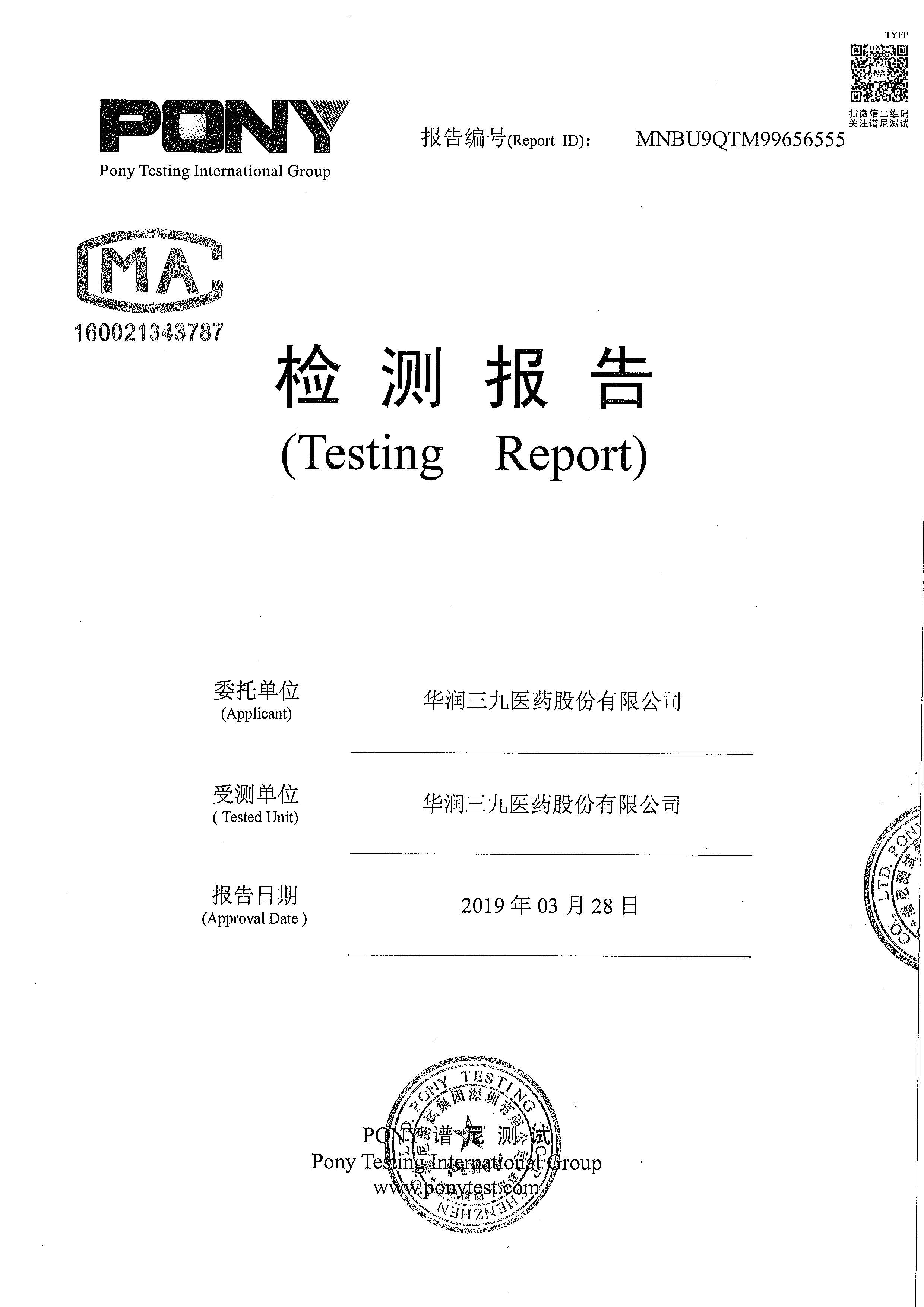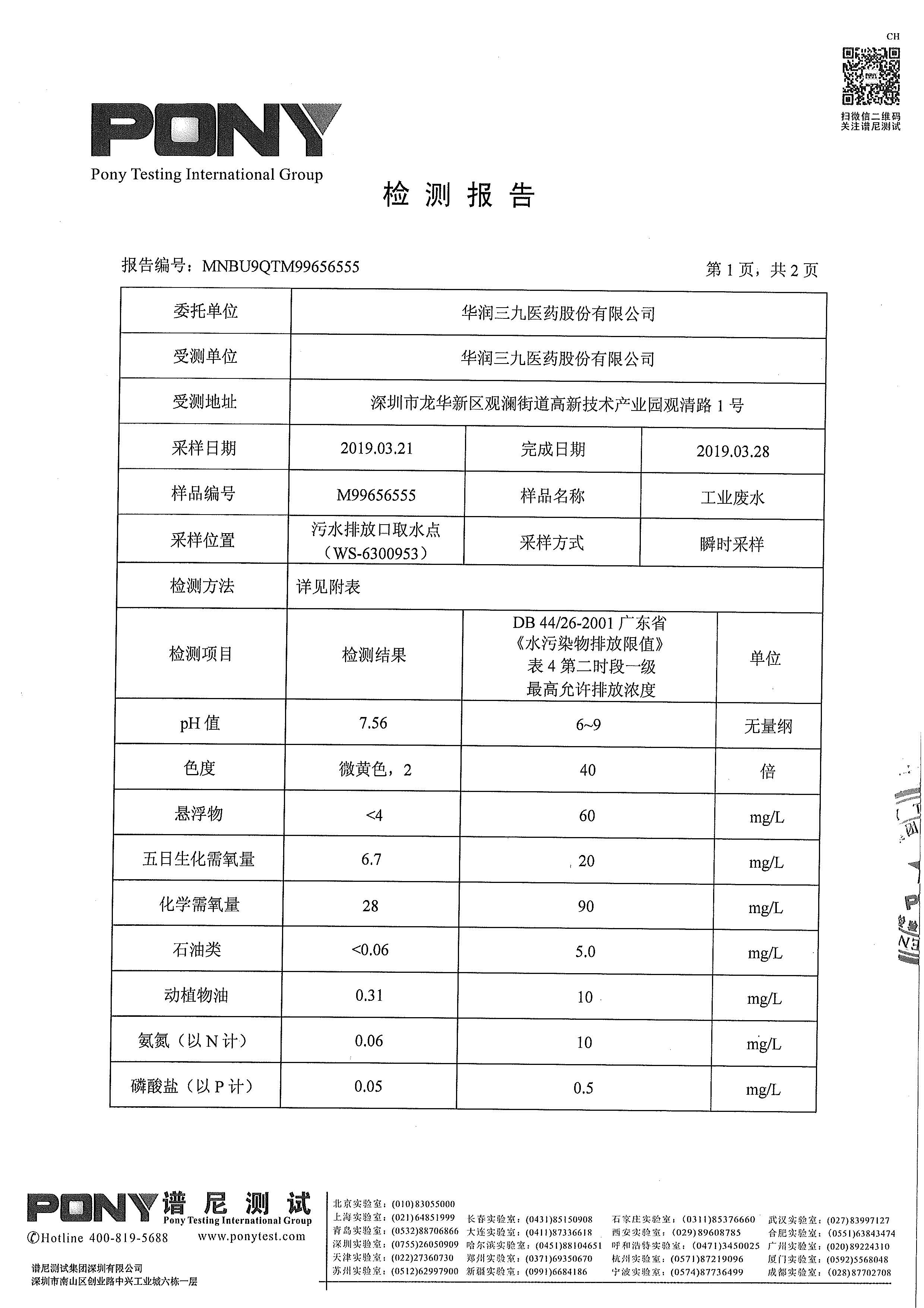 華潤三九廢水檢測報告(2019年3月)
