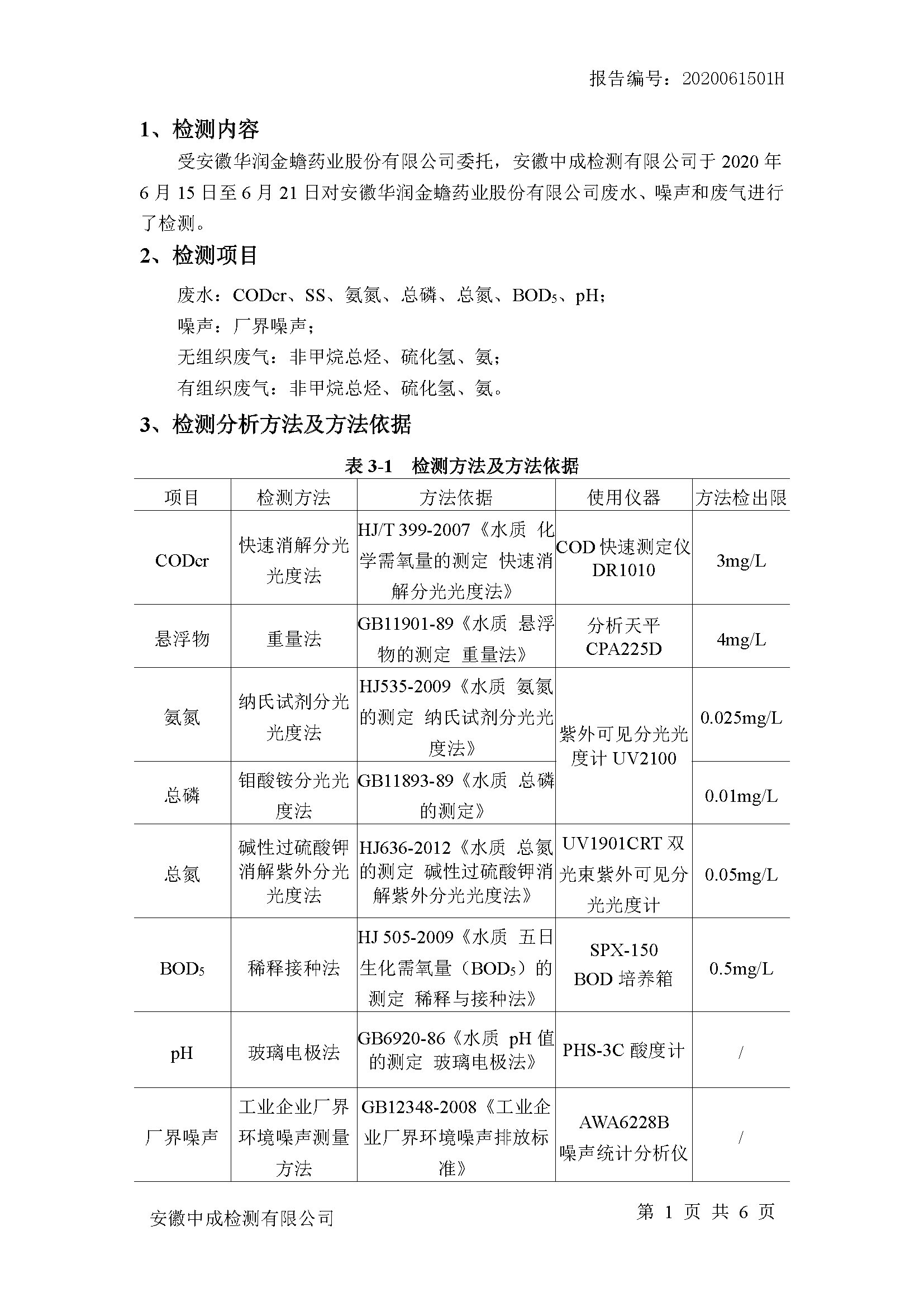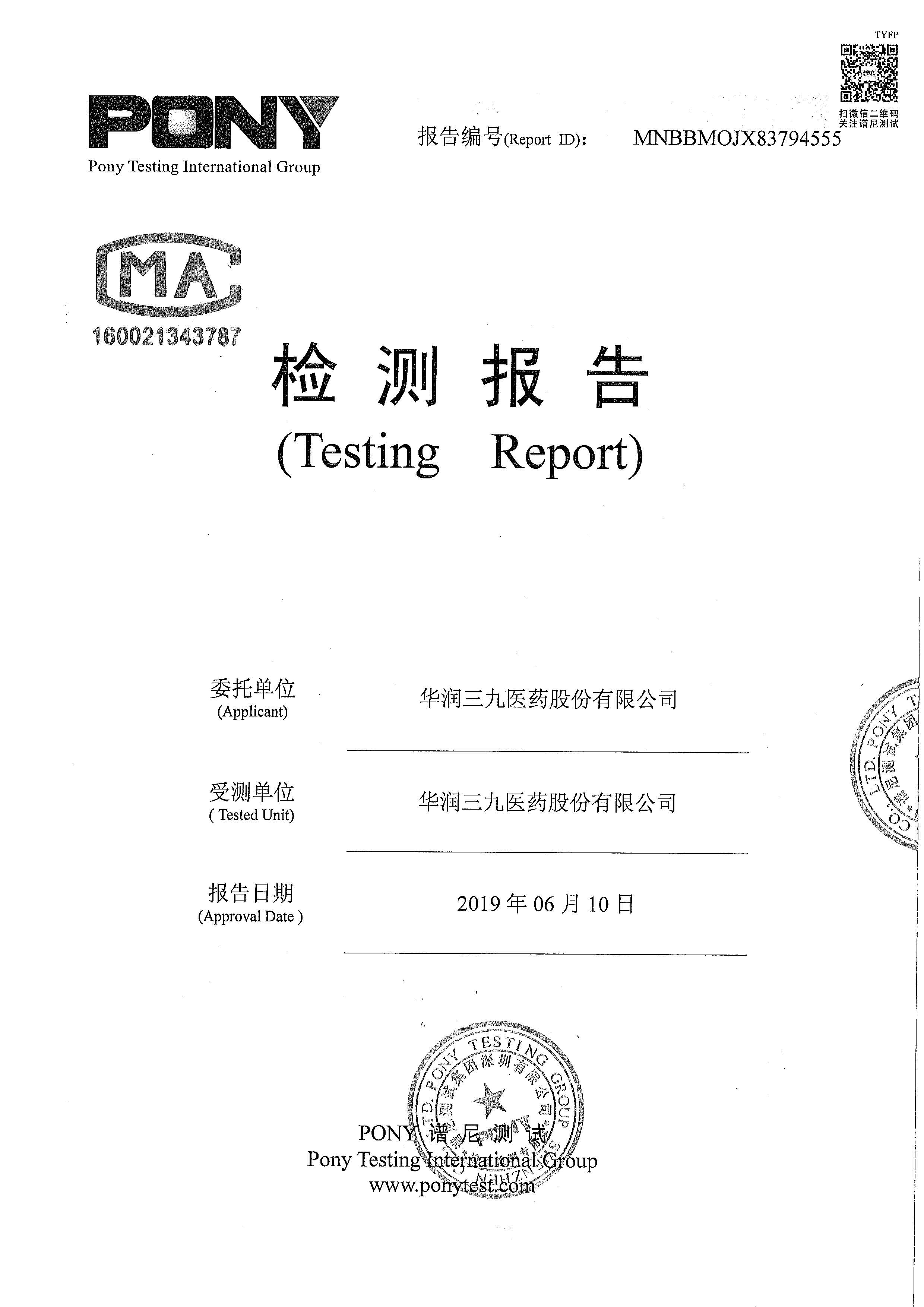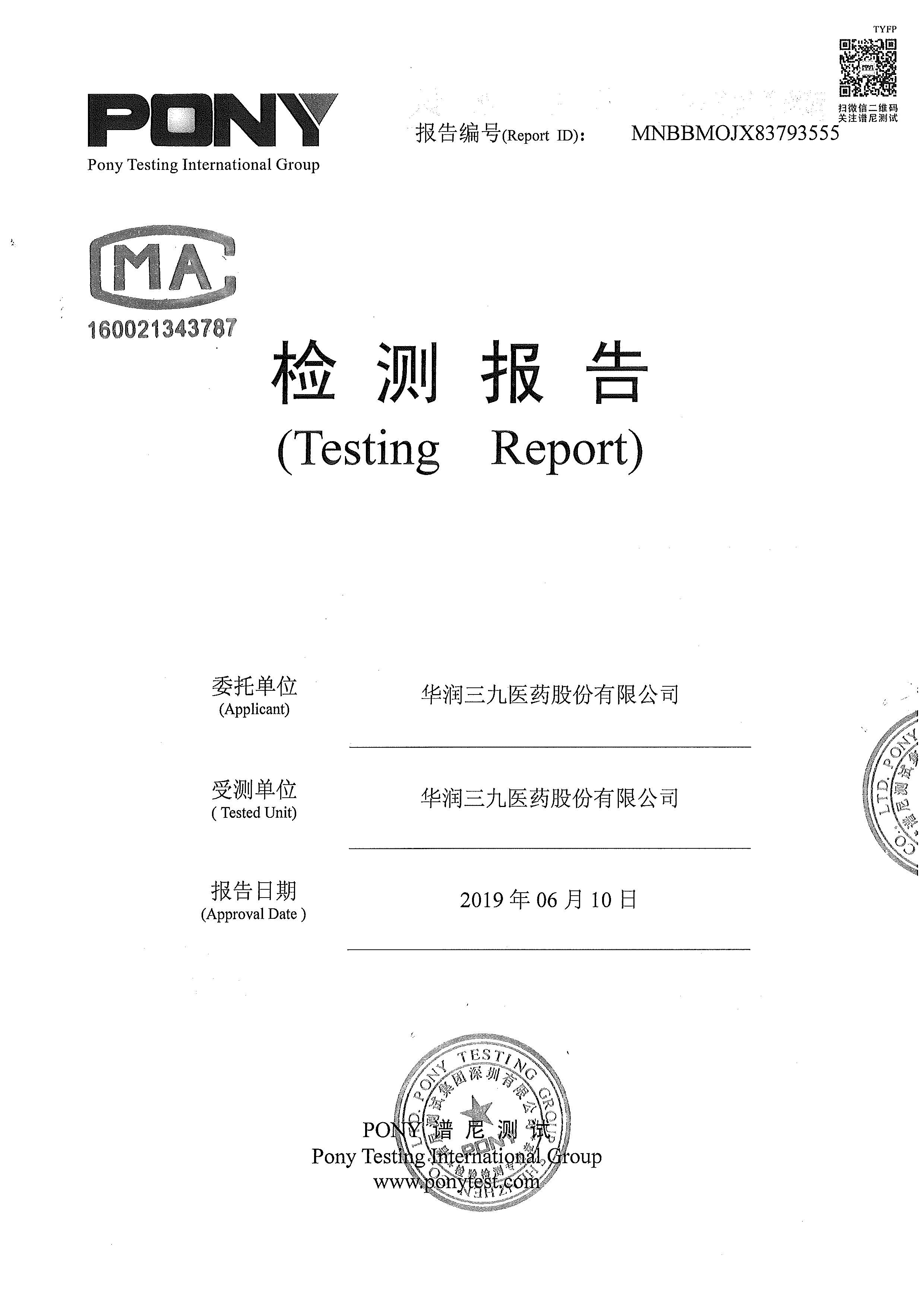 華潤三九廢水檢測報告(2019年6月)