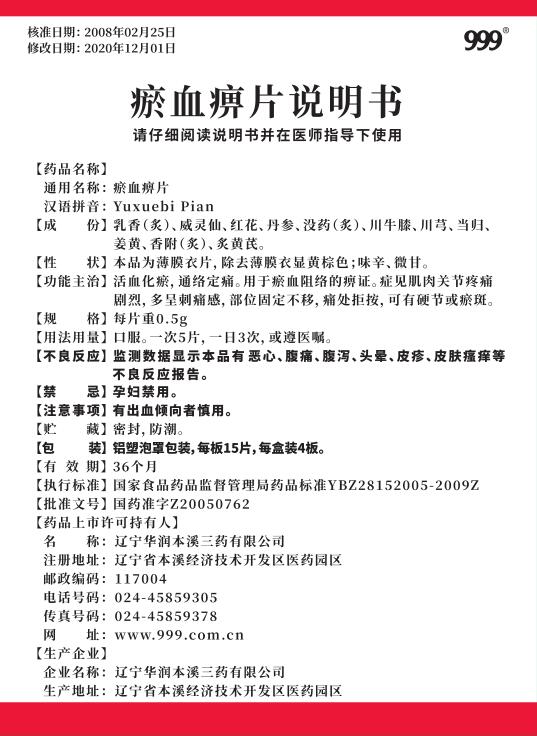 瘀血痹片15片x4板