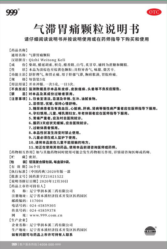 氣滯胃痛顆粒5克x9袋