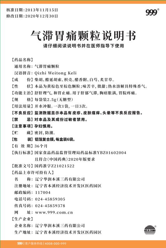 氣滯胃痛顆粒2.5gx6袋