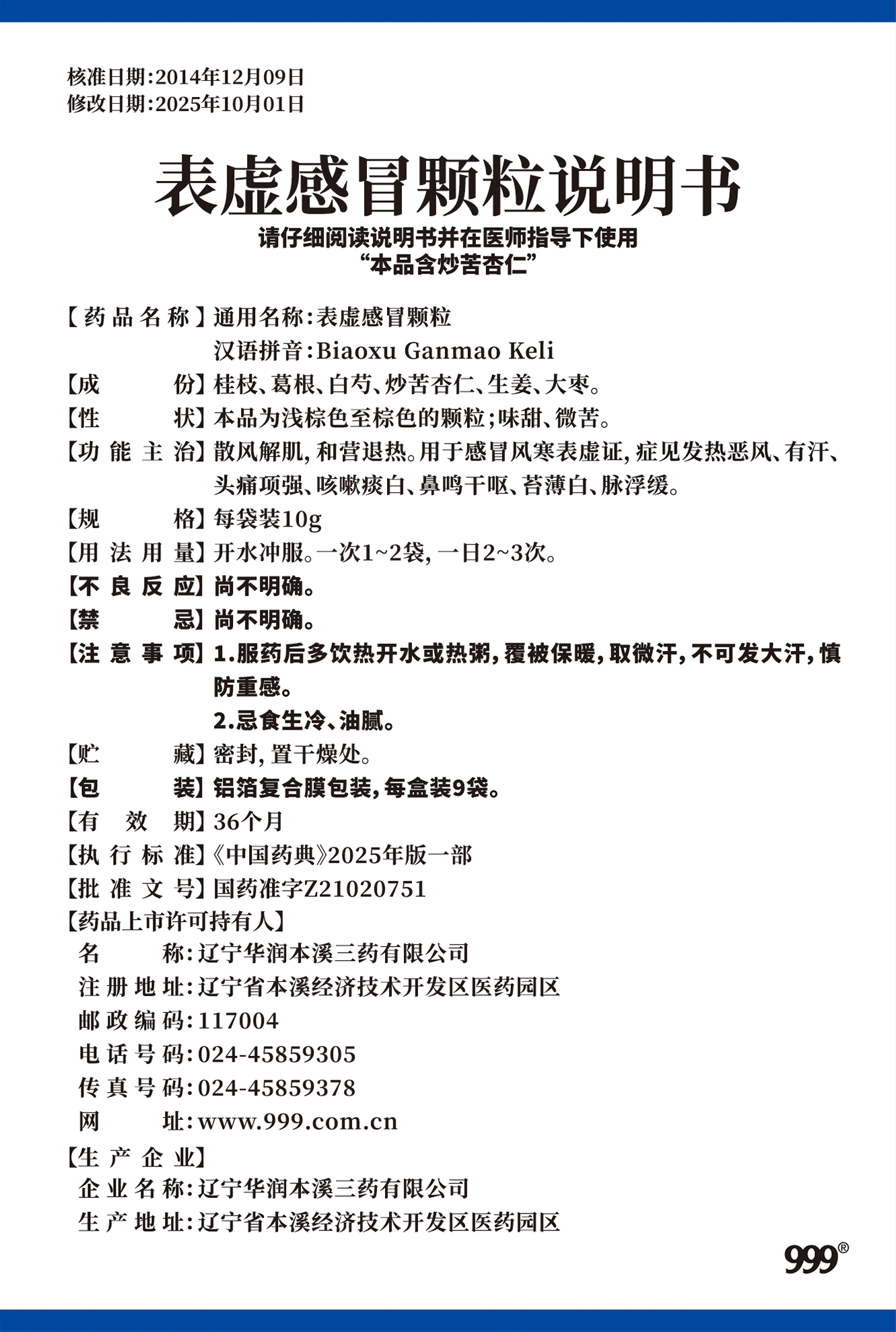 表虛感冒顆粒10克x9袋