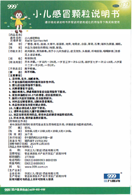 疏風解表,清熱解毒。用于小兒風熱感冒,癥見發(fā)熱、頭脹痛、咳嗽痰黏、咽喉腫痛;流感見上述證候者。