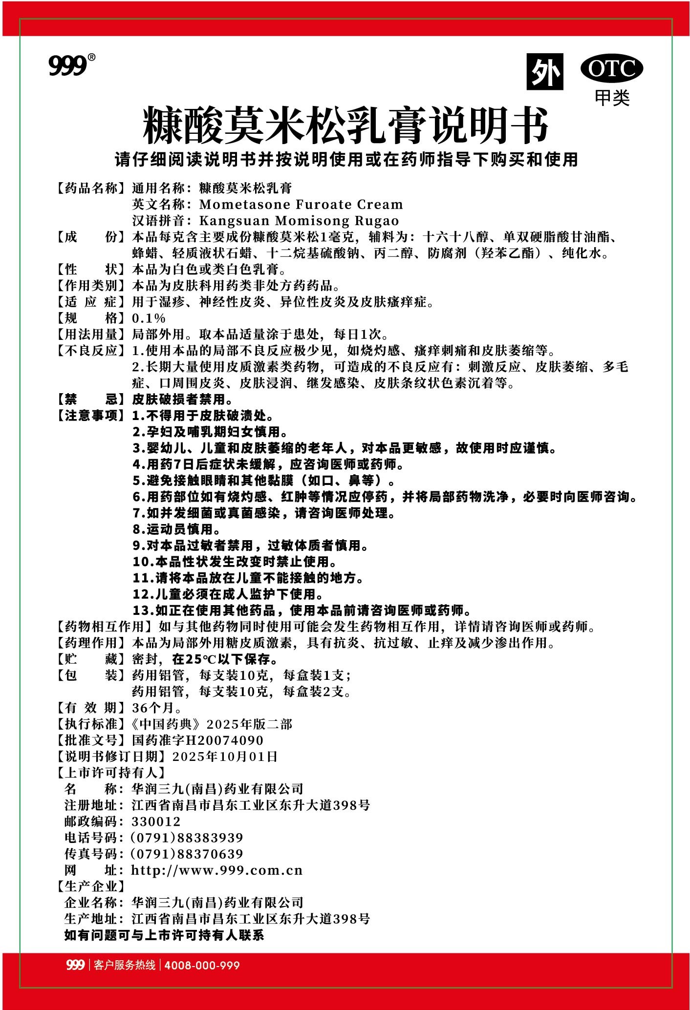 糠酸莫米松乳膏-南昌三九(鋁管裝)