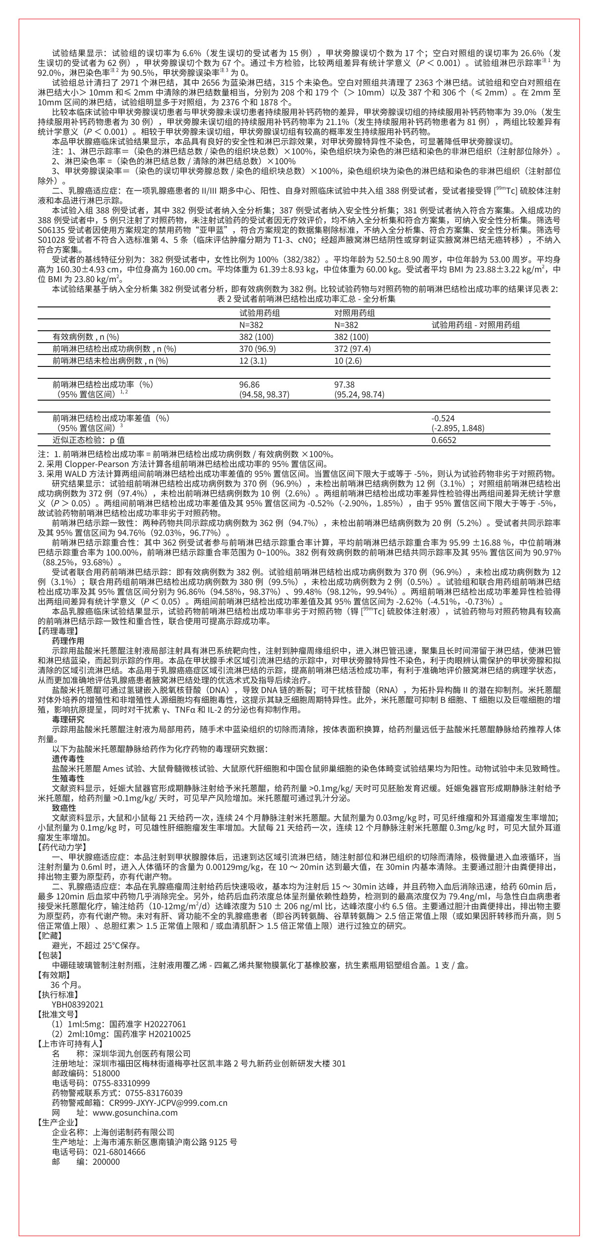 用于甲狀腺手術(shù)區(qū)域引流淋巴結(jié)的示蹤;用于乳腺癌前哨淋巴結(jié)的示蹤。