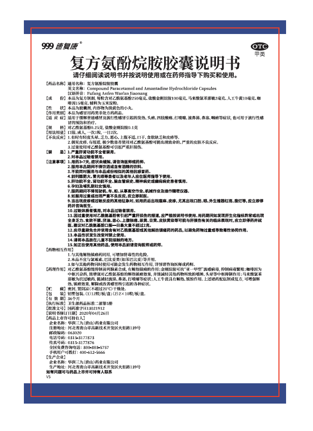 復(fù)方氨酚烷胺膠囊12粒、20粒說明書v5
