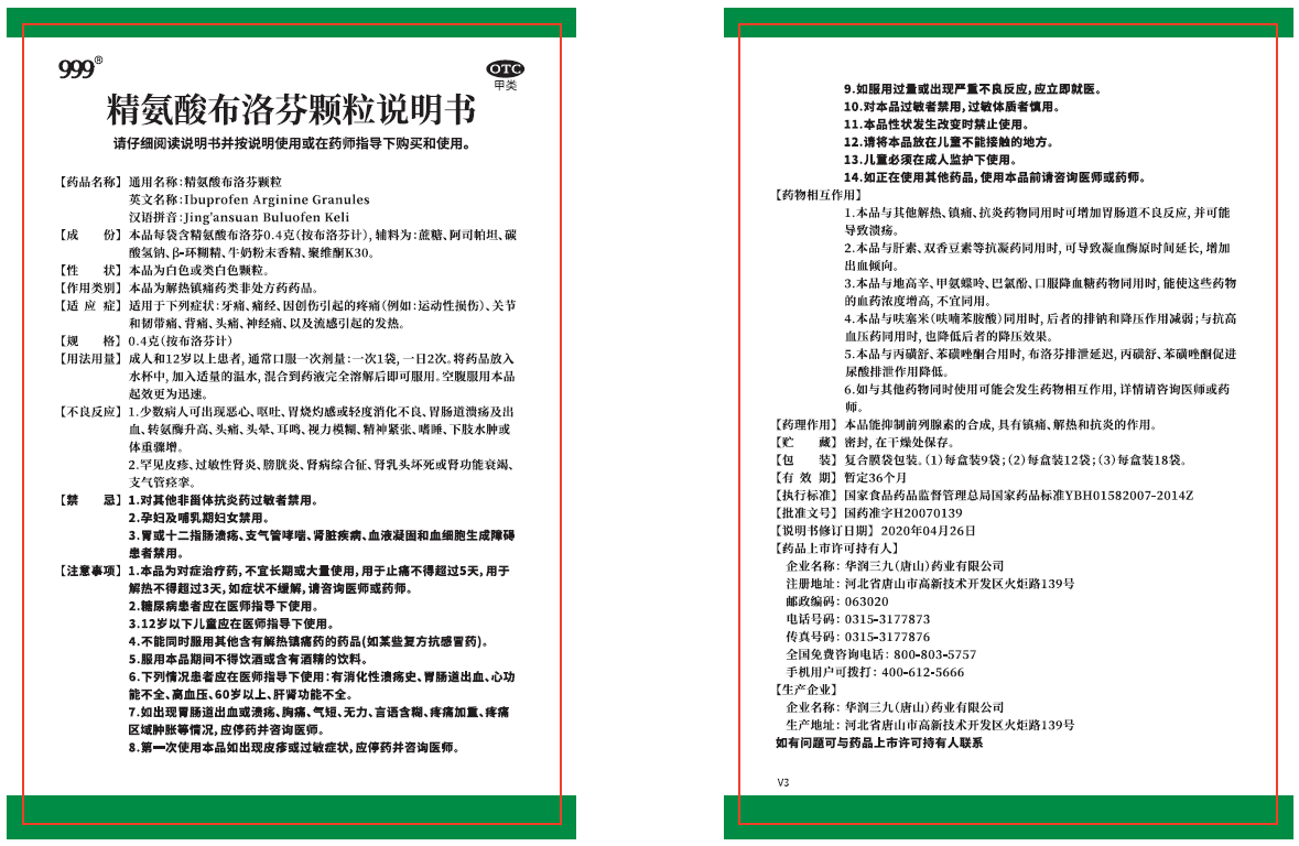 精氨酸布洛芬顆粒說明書(9袋、12袋、18袋)v3