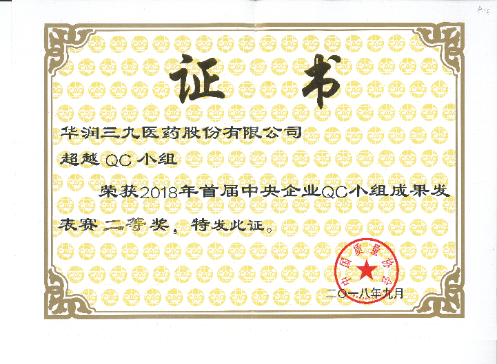 了解更多>>>華潤三九(棗莊)榮獲首屆中央企業(yè)QC小組成果發(fā)表賽二等獎