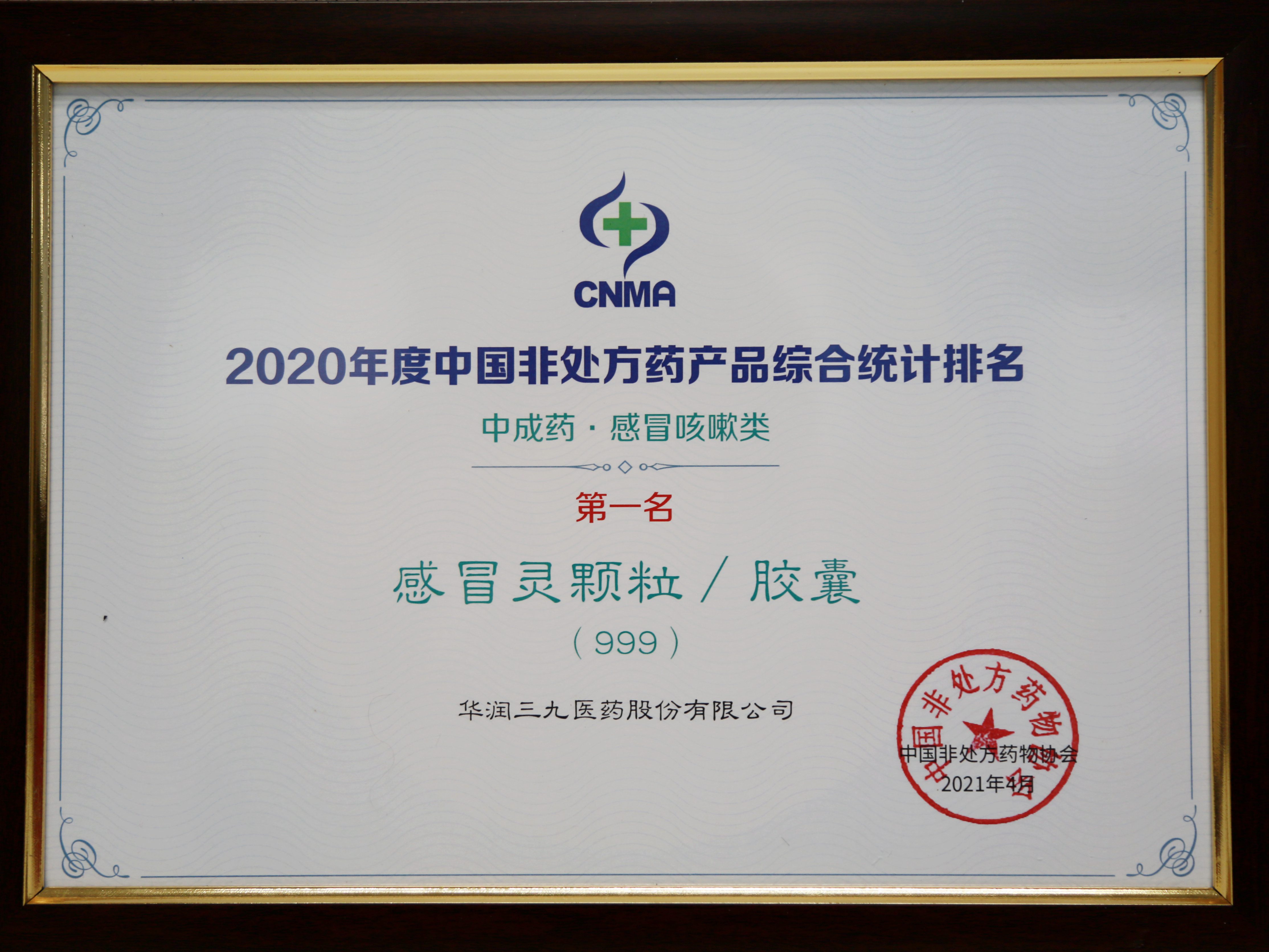 4月1日,由中國非處方藥協(xié)會(huì)主辦的“第十七屆中國自我藥療年會(huì)”,發(fā)布了2020年度中國非處方藥生產(chǎn)企業(yè)綜合統(tǒng)計(jì)排名,華潤三九再次榮登榜首。此外,999感冒靈顆粒/膠囊連續(xù)九年蟬聯(lián)感冒咳嗽類(中成藥)第一名,999復(fù)方醋酸地塞米松乳膏、多烯磷脂酰膽堿膠囊(易善復(fù))、999復(fù)方感冒靈顆粒在各自的品類排名中斬獲前三甲。