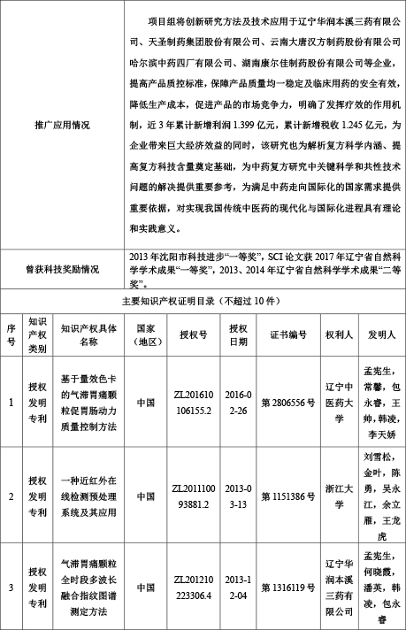 遼寧中醫(yī)藥大學擬推薦的教育部2018年度高等學校科學研究優(yōu)秀成果獎(科學技術)項目公示