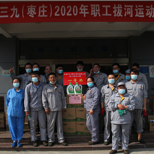 為迎接五一節(jié)的到來,在疫情緩解的前提下,華潤(rùn)三九(棗莊)于4月30日下午舉辦了2020年職工拔河運(yùn)動(dòng)會(huì),此次活動(dòng)要求參與者佩戴口罩,在積極比賽的同時(shí)做好疫情防護(hù)工作。
