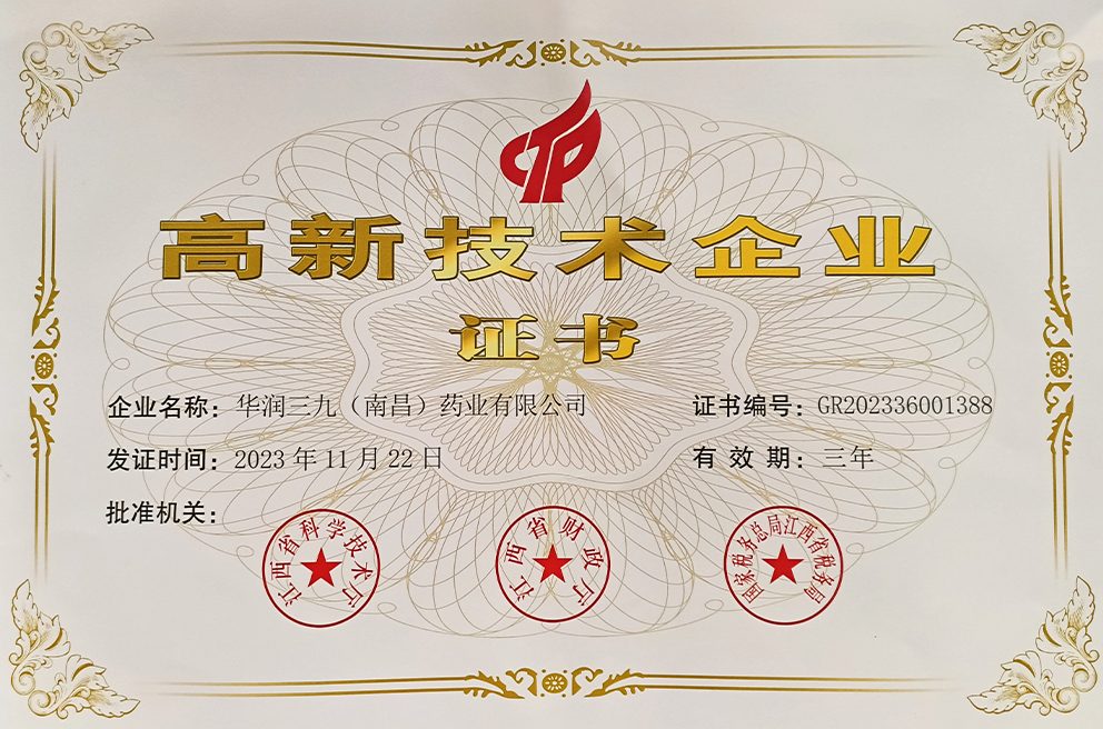 華潤三九(南昌)再次被認定為“國家高新技術(shù)企業(yè)”