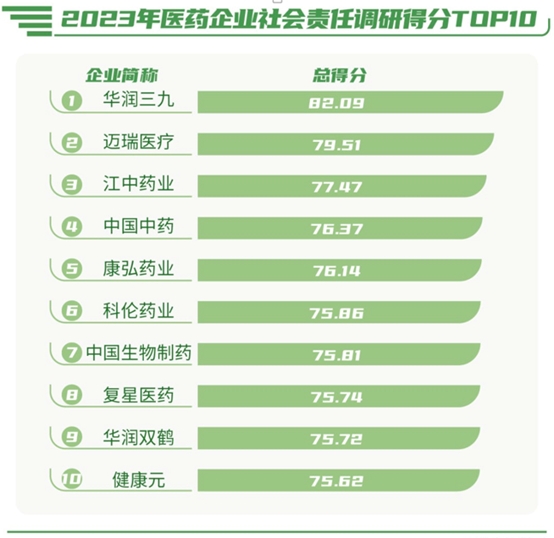 華潤三九入選南方周末“2023年醫(yī)藥企業(yè)社會(huì)責(zé)任調(diào)研榜”第一
