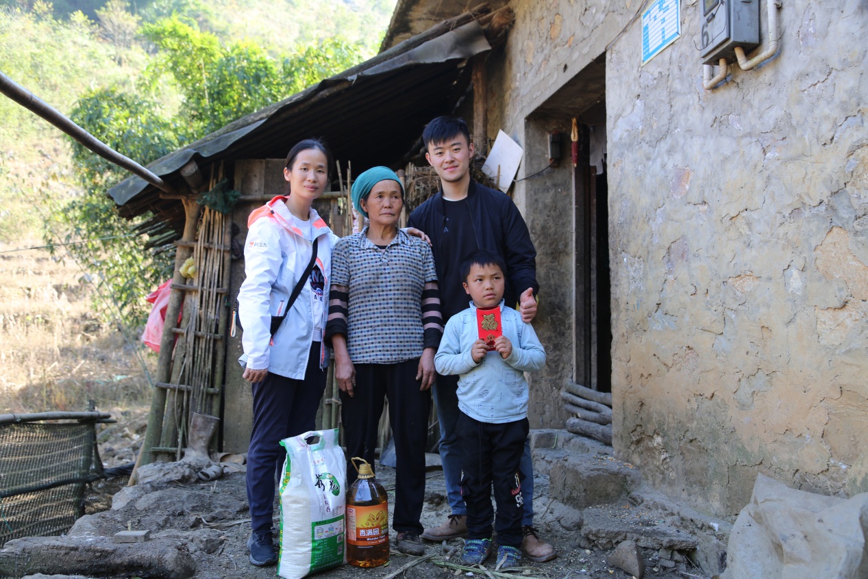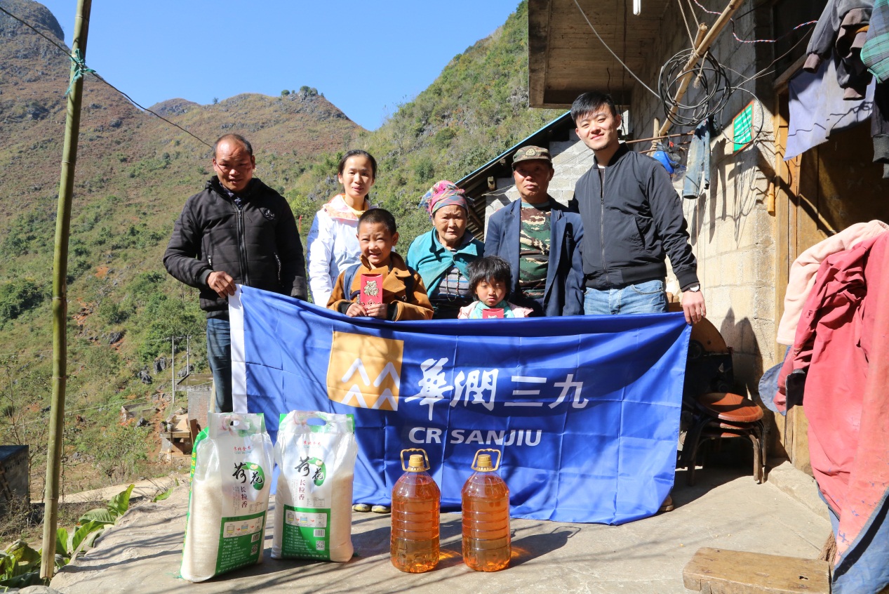 12月16日,華潤三九及華潤萬家代表等一行9人,在西林縣那佐鄉(xiāng)龍灘小學(xué)校長侯少東(97年出生)的帶領(lǐng)下,翻山越嶺,腳踩泥濘,走進(jìn)龍浪屯,為學(xué)校的貧困孤兒及家庭送去冬天米油糧食與其他物資。