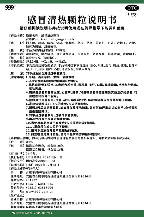 疏風散寒,解表清熱。用于風寒感冒,頭痛發(fā)熱,惡寒身痛,鼻流清涕,咳嗽咽干。