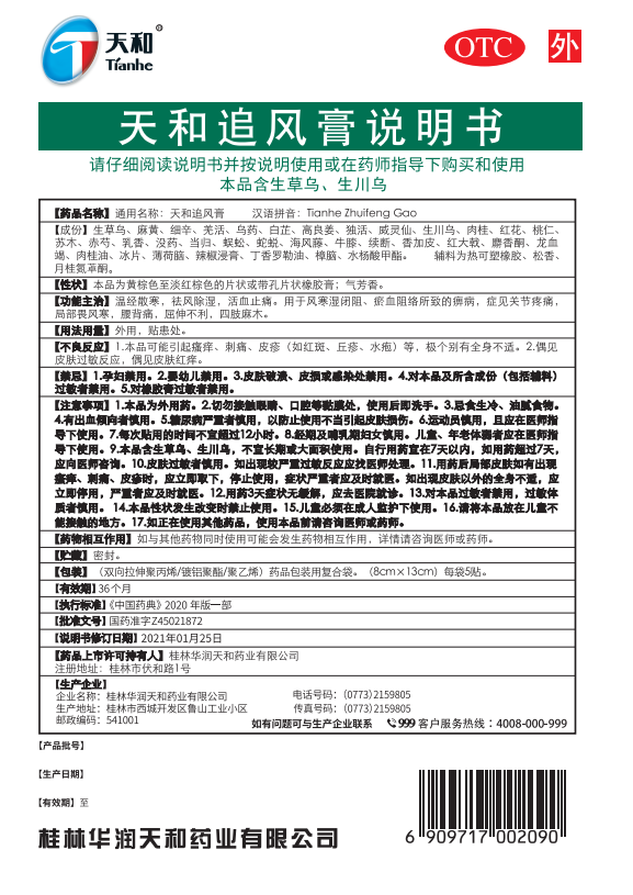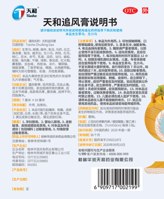 天和追風(fēng)膏(熱可塑橡膠型)